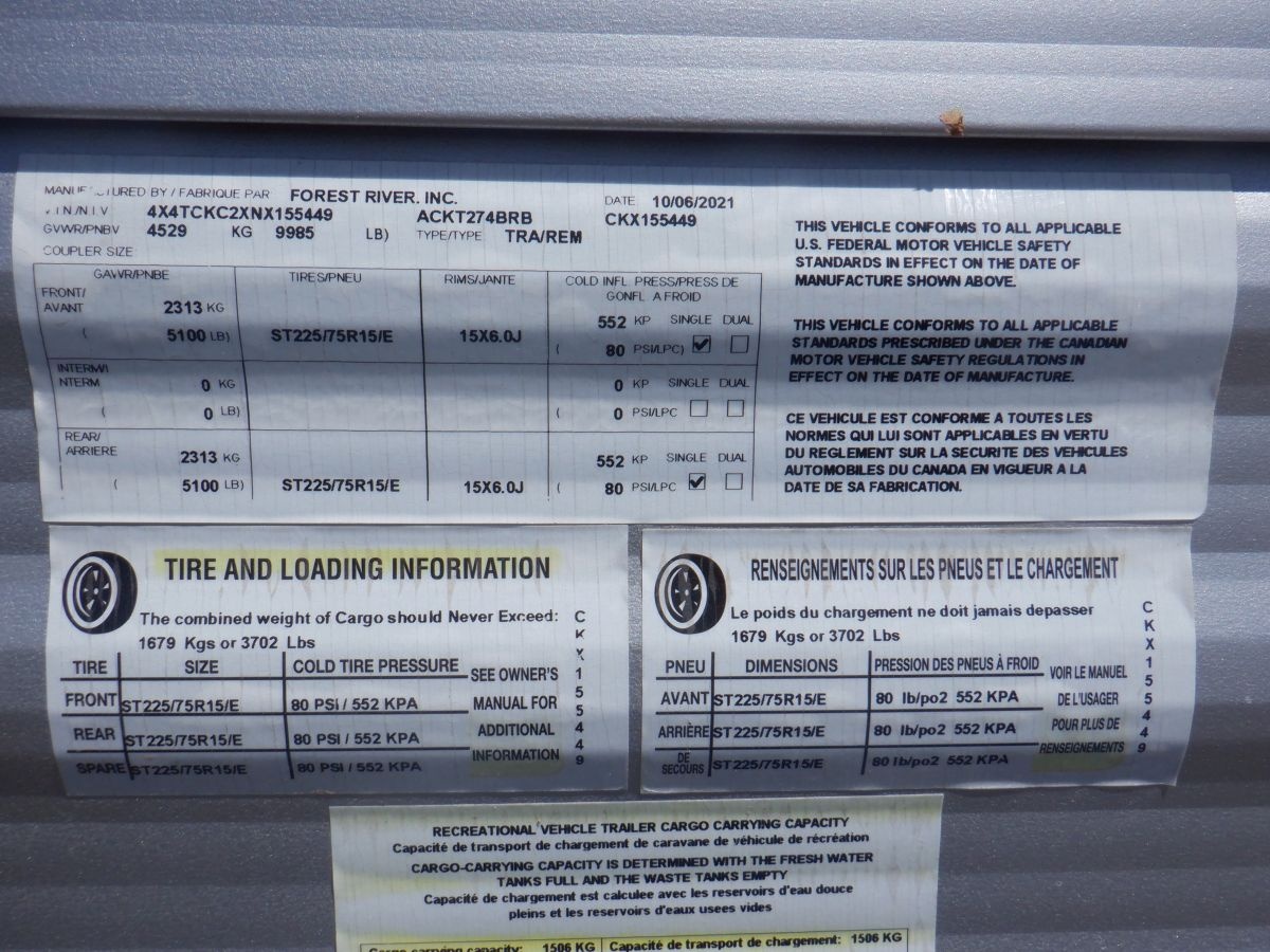 Here is a One Owner 2022 Forest River Cherokee Limited 274BRB Travel Trailer 30' Light Weight Trailer that we are selling For Sale By Owner!! 35 LB propane bottle, dual 12 volt batteries, battery shut off switch, Wire for TV. Hook ups outside for TV power and cable, Has microwave oven, 13.5 BTU AC, Am/FM CD/DVD player with speakers inside and out, 6 gal water heater, electric tong jack, Dometic dual propane / electric refrigerator, all led interior lights, fantastic electric bathroom fan, skylight in shower, toilet - shower, deep lavatory and kitchen sink, high profile kitchen faucet, 3 burner stove, awning, friction hinge entrance door, good tires, stabilizer jacks, rear mounted spare tire w/rack. Includes sway bars. Priced to sell fast. Check this one out. Remember You Pay NO Sales Tax! (key # P102)