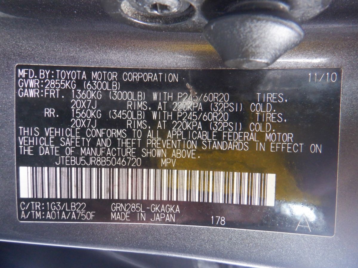 VIN #: JTEBU5JR8B5046720