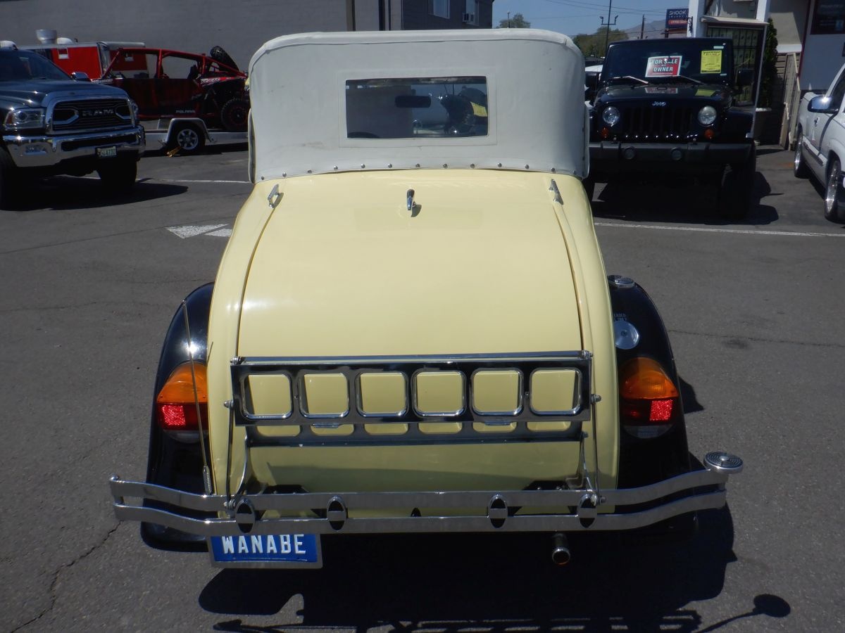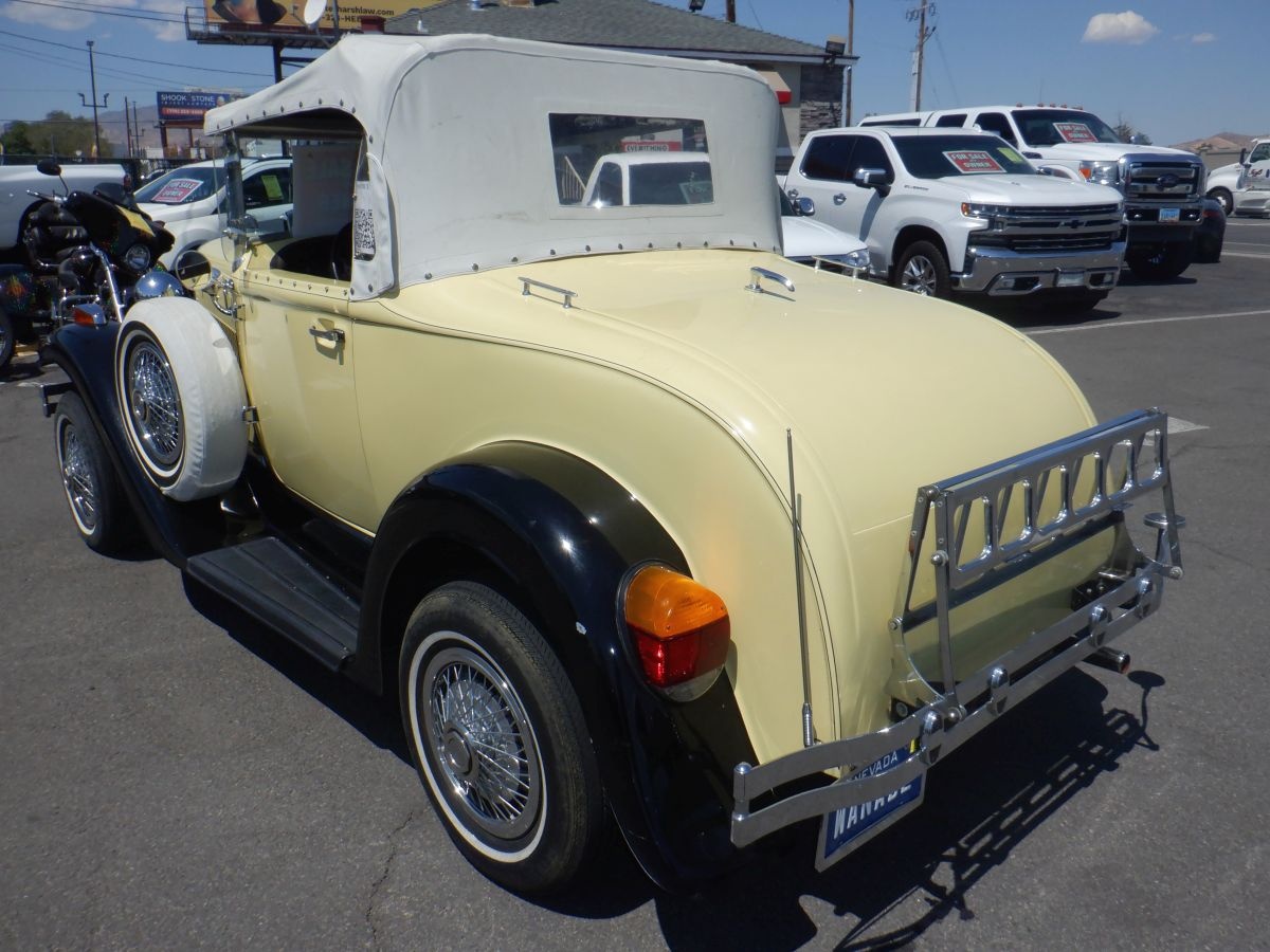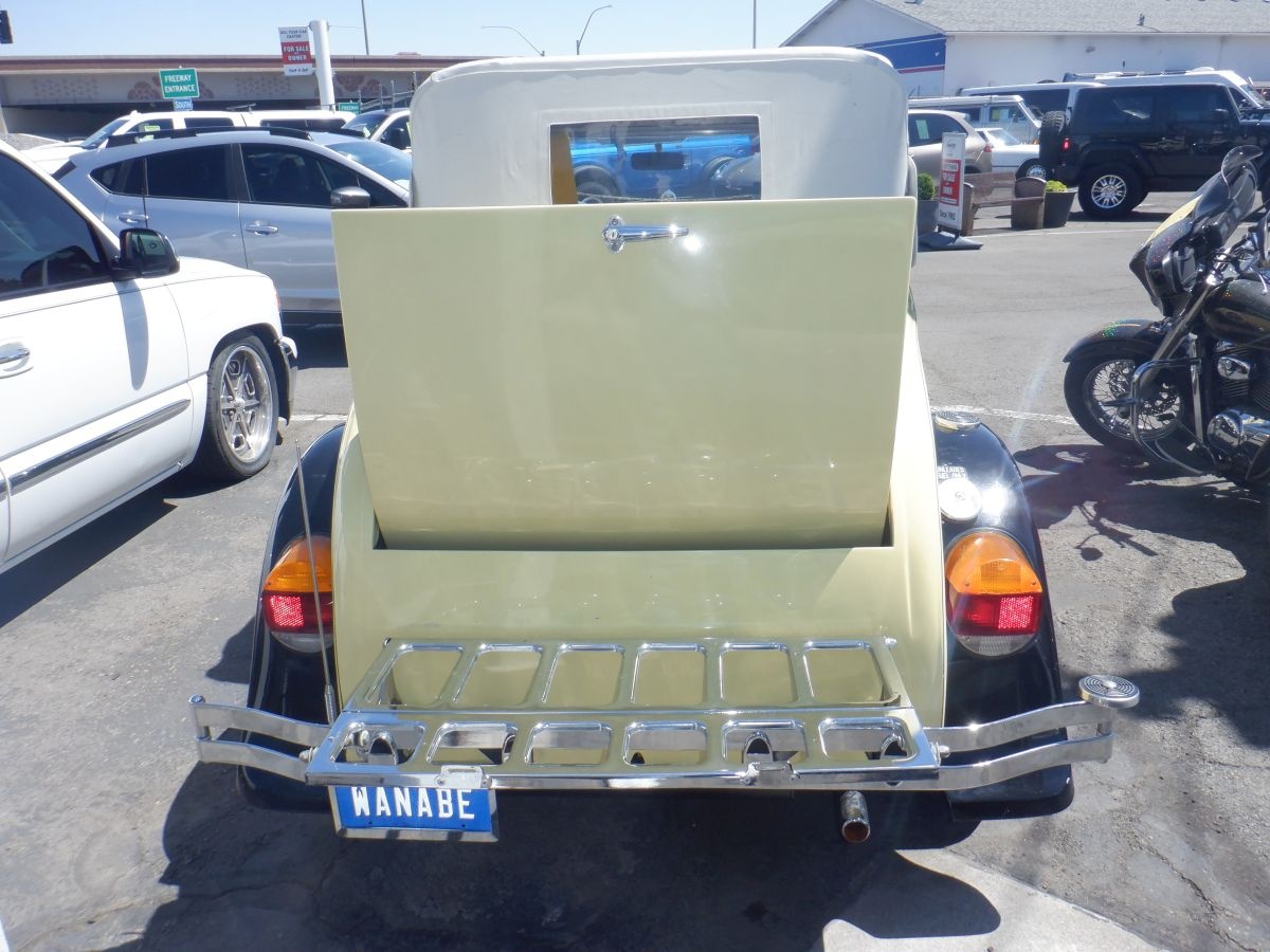 This Model A was bought as a Factory Kit Car and it sits on a especial made frame. All other parts are from a 1979 Ford Mustang with Mustang running gears. Powerful V8 302 engine. Automatic Transmission. 8" rear end. Mustang II front drive. Two Mounts spare tires. Rear Seat. Luggage Rack. This Model A car runs great. Always garaged. Here is a chance to own this great Classic Car. Priced to sell. I will consider a trade. Remember You Pay NO Sales Tax! (key # P34)
