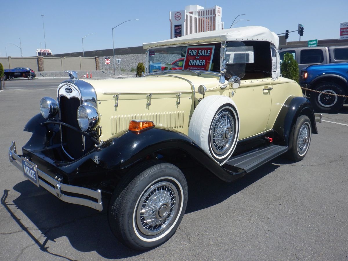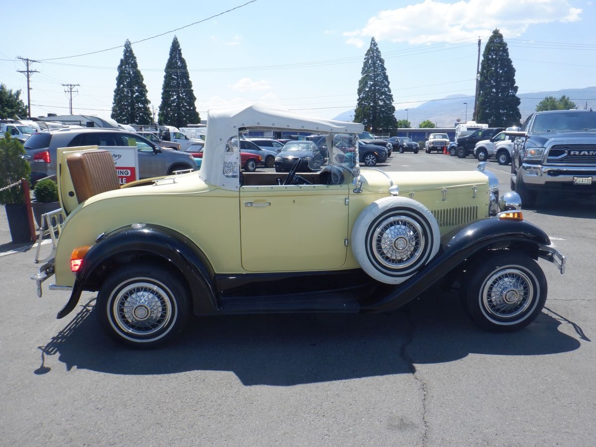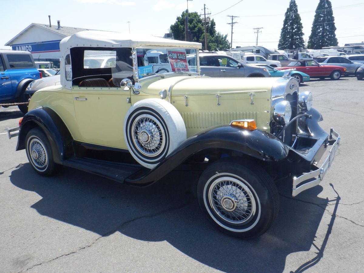 This Model A was bought as a Factory Kit Car and it sits on a especial made frame. All other parts are from a 1979 Ford Mustang with Mustang running gears. Powerful V8 302 engine. Automatic Transmission. 8" rear end. Mustang II front drive. Two Mounts spare tires. Rear Seat. Luggage Rack. This Model A car runs great. Always garaged. Here is a chance to own this great Classic Car. Priced to sell. I will consider a trade. Remember You Pay NO Sales Tax! (key # P34)