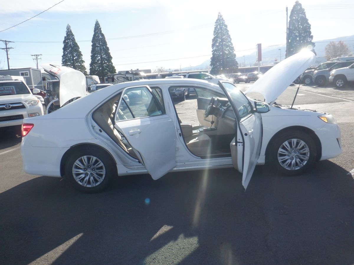 Here is a Beautiful 2013 Toyota Camry LE Sedan 4D. It has cloth interior and front wheel drive with an automatic transmission. It has 135,251 miles on it. I am selling this Toyota For Sale By Owner!! This is a 4-Cyl, 2.5 Liter engine and it gets 25 mpg city, 35 mpg hwy. Cruise control. XM/Sirius Radio ready, Bluetooth ready. Keyless entry. CD player. Priced to sell. Check this one out. Remember You Pay NO Sales Tax! (key # A15)