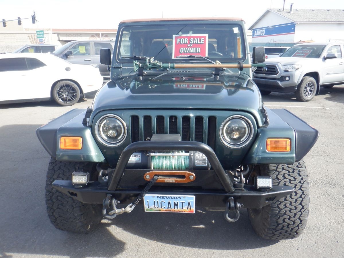 I'm selling my 2002 Jeep Wrangler Sahara Sport Utility 2D. I am the second owner of this 2002 Wrangler Soft top. This Jeep Wrangler comes with the famous 6-Cyl, 4.0 Liter and the 5 Speed Manual transmission. It has been maintained regularly. Rebuilt/new- transfer case, off-road suspension, undercarriage/handling (have all records). This Jeep Wrangler come with few upgrades, Aluminum wheels with All-season tires. Upgraded stereo and speakers, Custom front and back heavy duty bumpers with winch and LED Pods, Front end has been upgraded for Off-Road. Upgraded Head lights, Matching Spare tire, Two 5gal. Fuel tanks, Hi-Lo jack and much more. Awesome 4-wheel drive. Priced to sell fast. Check this one out. Remember You Pay NO Sales Tax! Call me for more information. (key # B7)