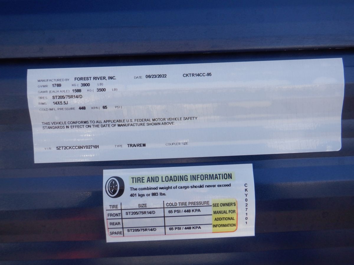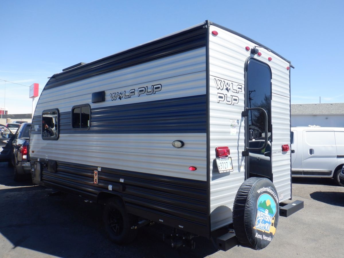 Herer is a 2022 Forest River Wolf Pup Limited 14CC. This 2022 Forest River Wolf Pup Limited is just like new I have only used it One time. Fully self contained. Sleeping Capacity: 3-4 (Queen bed + dinette). Fresh/Grey/Black Tanks: 26 / 23 / 23 gal. Shower, Propane tank, 2 burner stove, Microwave, Dinnette table, Outside speakers. Premium Wheels, Roof Air Conditioner, Dual battereis. Good alll-season tires. GVWR: 3,900 lbs, Length: 19' 3", cThis small RV is ready to go anywhere easy to tow light weight. Priced to sell. Check this one out. Remember You Pay NO Sales Tax! (key # A3)