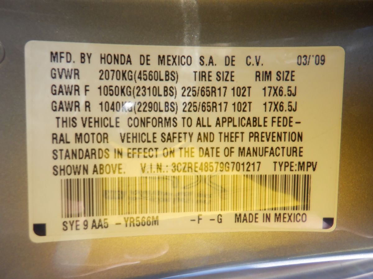 VIN #: 3CZRE48579G701217