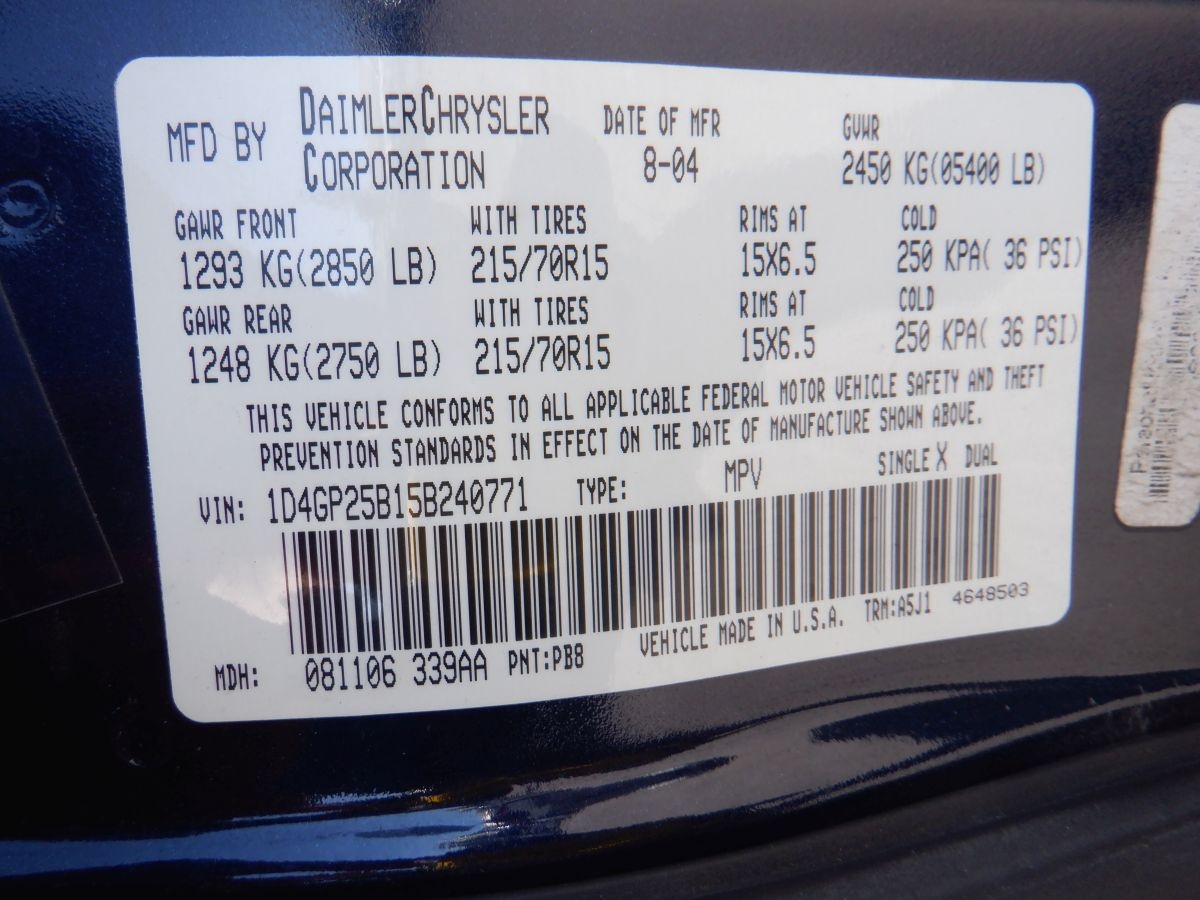 VIN #: 1D4GP25B15B240771